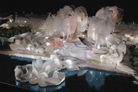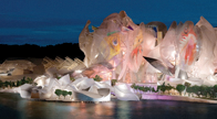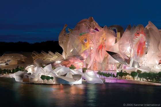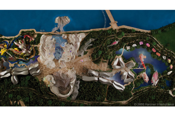 After two years of design, including countless iterations and models, Gehry and the team arrived at a truly remarkable design for the resort. Framed by towering, translucent, sail-like structures, the resort's aquarium consisted of undulating, organic-shaped tanks teaming with sea life and robotic technology that immersed guests in the wonder of the oceans.