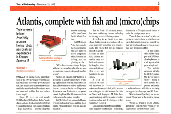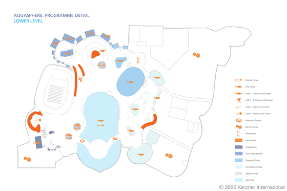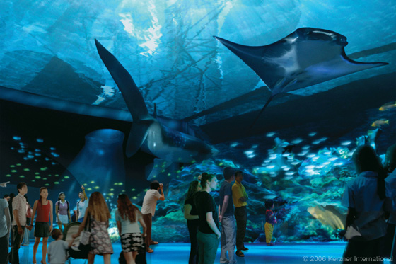 Inspired by the site's location on a small island, Gehry and Kerzner envisioned a place that would celebrate the magnificence of the sea. In addition to iconic architecture, the resort would feature the largest aquarium in the world. But unlike other aquariums that only exhibit present-day sea life, the aquarium at Atlantis Sentosa would allow guests to experience and interact with oceans from the past, present, and future through the use of technology and robotics.