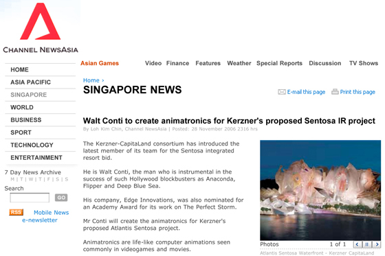 Following completion of the Kerzner bid package, Walt joined Frank Gehry, Sol Kerzner, Peter Arnell, and CapitaLand CEO, Liew Mun Leong, in a series of final presentations to the government ministers in Singapore. The selection process received worldwide media attention.