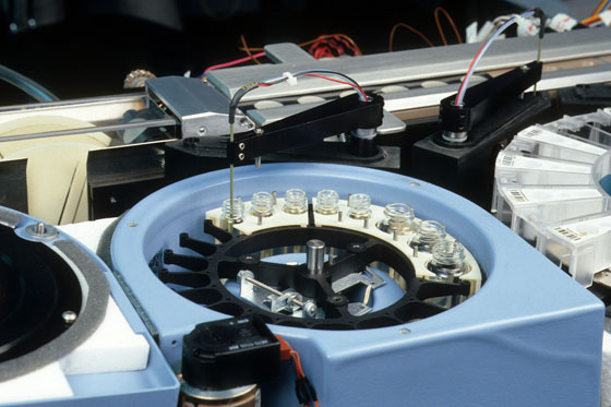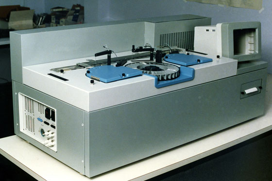 that it be as reliable as possible and that it be field serviceable. From a design standpoint this was addressed by making the instrument as modular as possible. The five mechanical probes were identical, as were the reagent carousels and the syringe units. During assembly, each module could be tested and calibrated as a separate unit and then just
