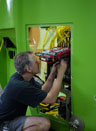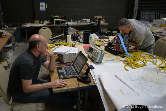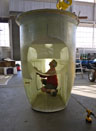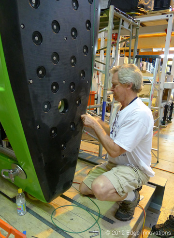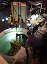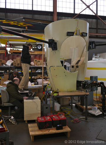 After completing the assembly of the Lower Pod in California, the Edge crew traveled to Australia to oversee integration with the rest of the sub. The upper section of the submersible, including the man-sphere, had been designed and assembled by an Australian team under Cameron's direction. Working closely with the Australians over an intensive 4-week period, the Lower Pod's numerous systems were integrated with the rest of the sub, then tested and tuned.